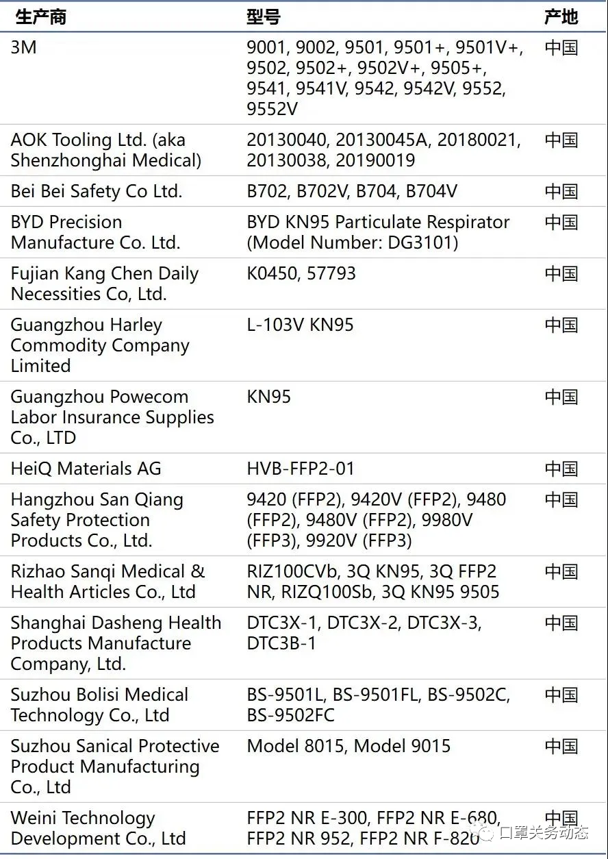 中國生產(chǎn)的符合以下準(zhǔn)則之一的一次性非NIOSH批準(zhǔn)的呼吸器,符合5月7日修訂的EUA授權(quán):