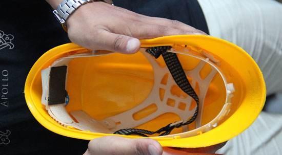 頭戴黃色安全帽的是工人,記者查看其帽子發(fā)現(xiàn),合格證上材質(zhì)注明為 "ABS",帽襯也比較厚實(shí)。白色安全帽的是管理人員,帽子材質(zhì)為 " 玻璃鋼 "。該管理人員說,受網(wǎng)上 " 安全帽碰撞 " 視頻影響,公司于 19 日在工地上測試安全帽性能," 已發(fā)通知要求,全部更換安全帽,工人的帽子已經(jīng)交到施工方手上。" 對于市面上幾塊錢的劣質(zhì)安全帽他表示," 那有什么用呢?"