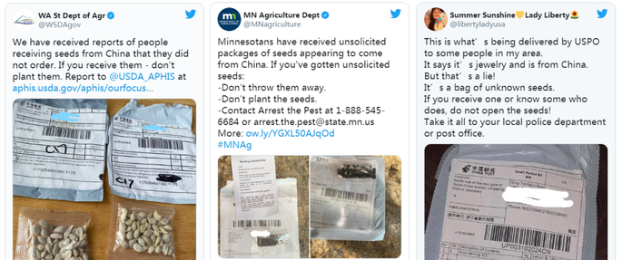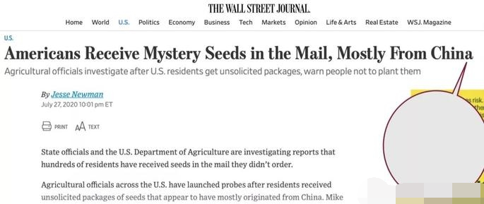 美國華爾街日報近期發(fā)布了一篇報道,在報道中指出美國維吉尼亞和其他12個州超過1000人,在過去一個月收到了含有種子的不明郵包。