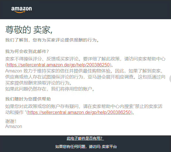 跨境賣家刷單很瘋狂的時候,華爾街日報甚至專門報道過亞馬遜中國賣家的“刷單”行為,披露過空包、職業(yè)測評員等存在。今年7月末,亞馬遜還給疑似刷單的賣家們?nèi)喊l(fā)了郵件稱賣家有為買家評論提供報酬的行為,賣家們一時都暫緩了刷單行為。