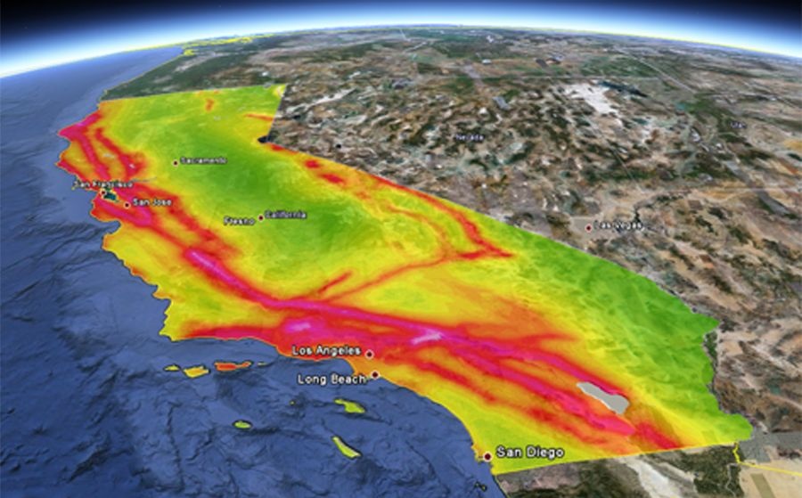 地質(zhì)斷層被認(rèn)為是加州地震頻發(fā)的罪魁禍?zhǔn)?。加州地處于卡斯卡迪亞俯沖帶上Cascadia subduction zone),最危險(xiǎn)的圣安德烈斯(San Andreas)斷層縱貫加州1280公里的海岸線(xiàn)。棕櫚泉、洛杉磯和舊金山等人口密集的大中城市,均坐落在該斷層之上。