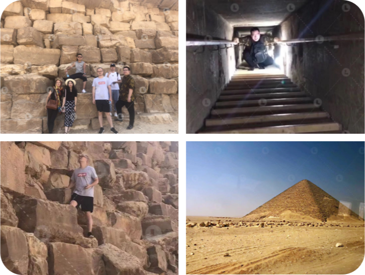工作之余,當(dāng)然也需要適當(dāng)?shù)姆潘?。說(shuō)到埃及,最不能錯(cuò)過(guò)的打卡景點(diǎn)就是金字塔了!領(lǐng)肯展團(tuán)一天就逛了足足三個(gè)金字塔,大家還深入到了金字塔的內(nèi)部,爬的可是不輕松呢~但對(duì)于勇于挑戰(zhàn)的外貿(mào)人,依然樂(lè)趣十足!