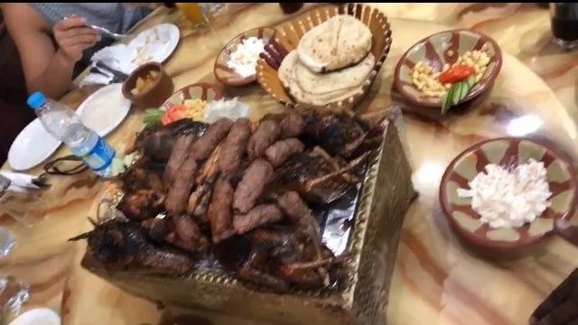 有美景,當(dāng)然就少不了美食,埃及烤肉(Kebab)是開(kāi)羅人常吃的食物,很多地方都有專門(mén)的烤肉店,以炭烤為主。除了最有名的烤乳鴿,還有烤雞、烤牛肉、烤羊肉等,配上香菜、胡椒之類的佐料,噴香四溢。