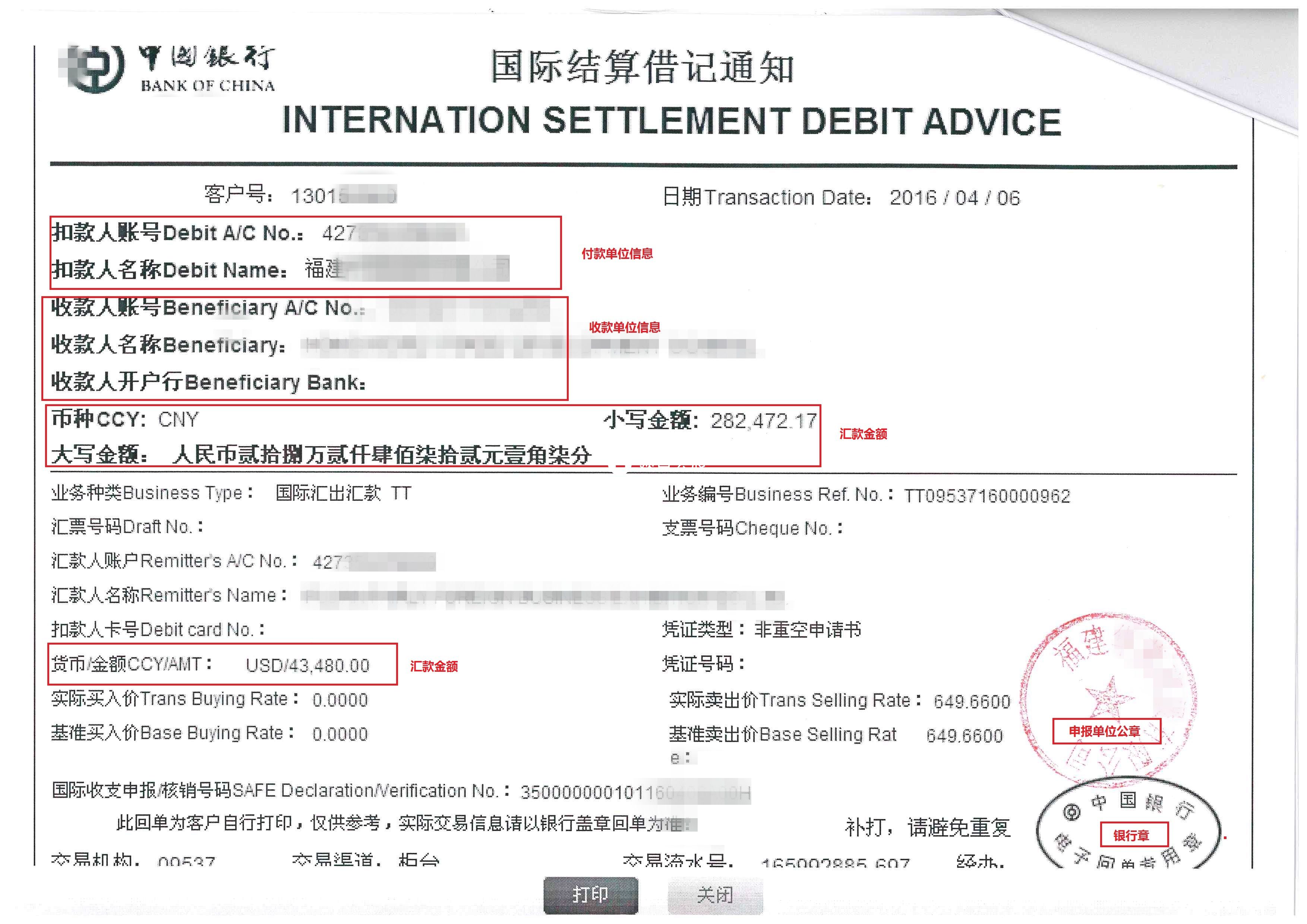 *境外匯款銀行結(jié)算單 | 查看樣例 | ||